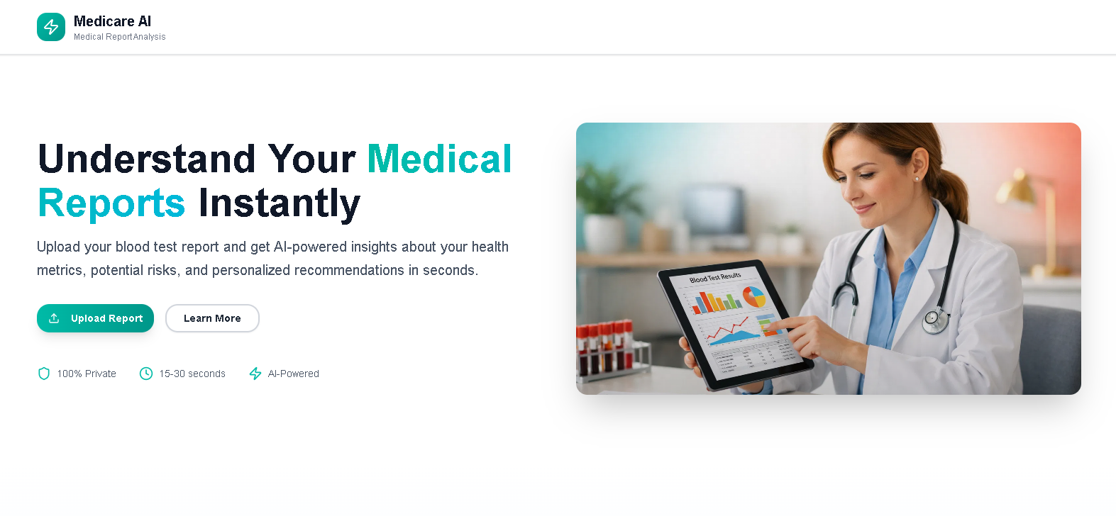 MediAnalyze is a modern, AI-powered web application that analyzes blood test reports and provides intelligent health insights.